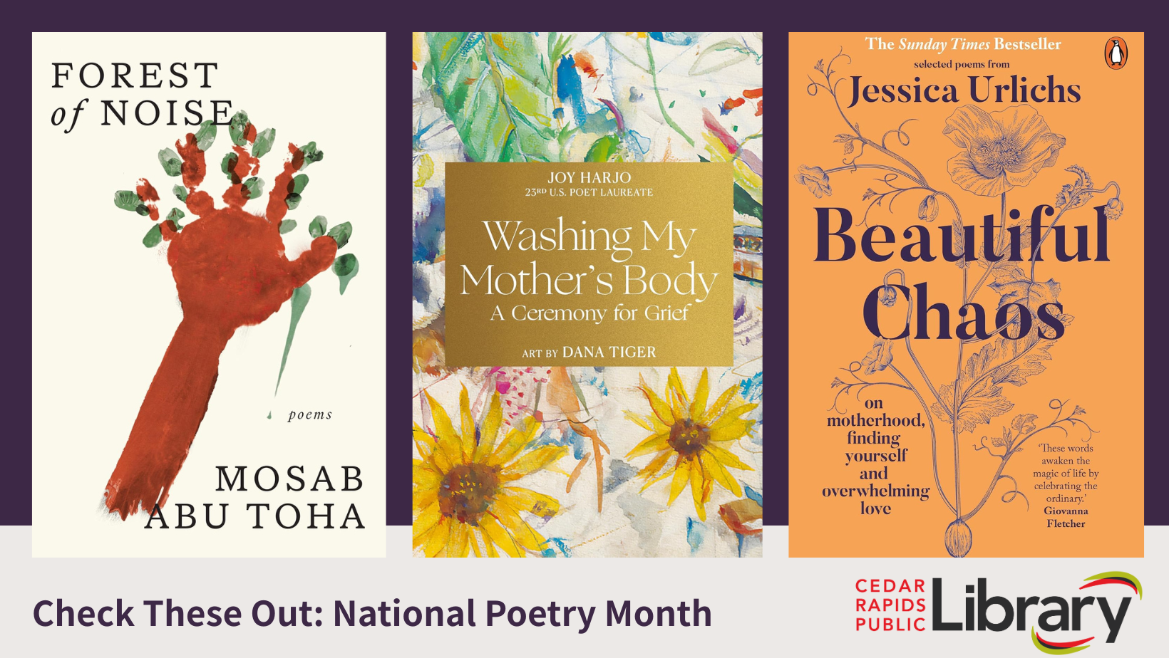 Whether you're a poetry enthusiast or are using April to dive into poetry, here are some new volumes of poetry in our collection. Browse the list below, and put titles on hold in our catalog by clicking on their covers.